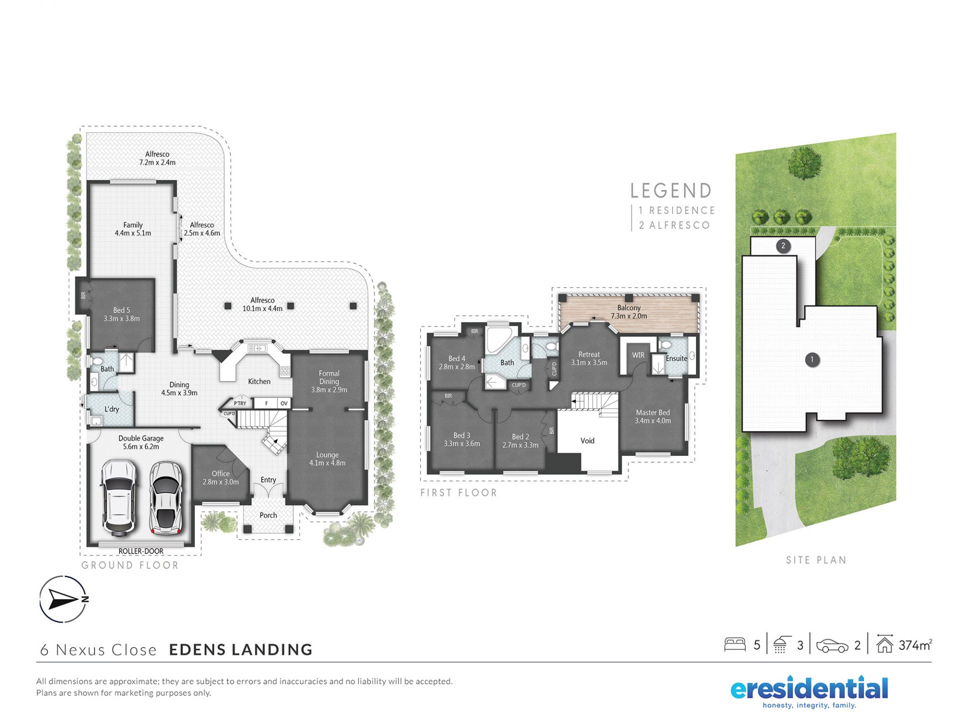 - 5 bedrooms plus office, 3 bathrooms, double garage