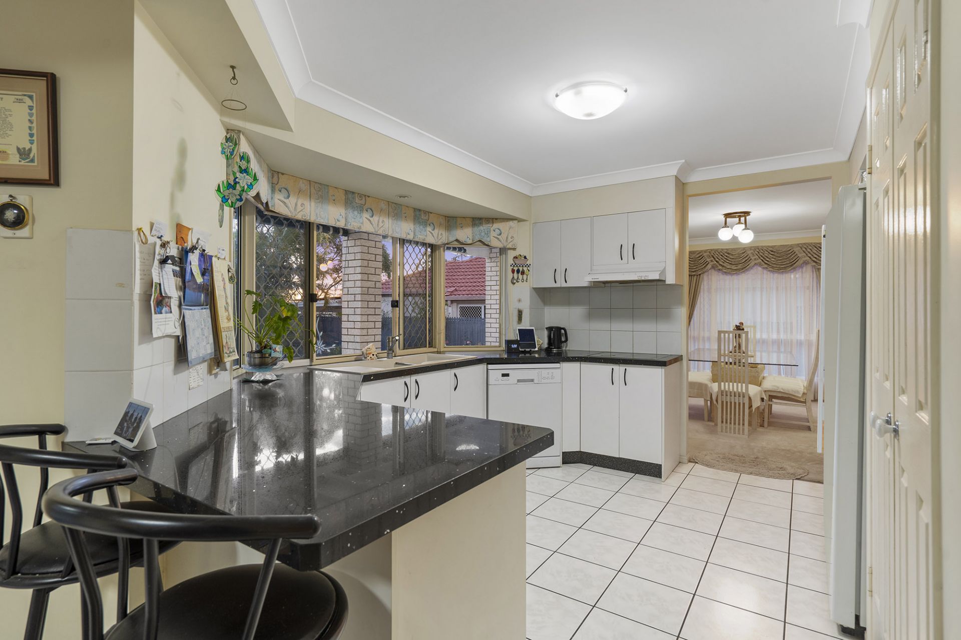 The kitchen is the heart of the home and positioned perfectly between the formal and family living areas. It has an abundance of cabinets, plenty of bench space, a peninsula with room for seating, and a view straight out to the backyard and alfresco area.