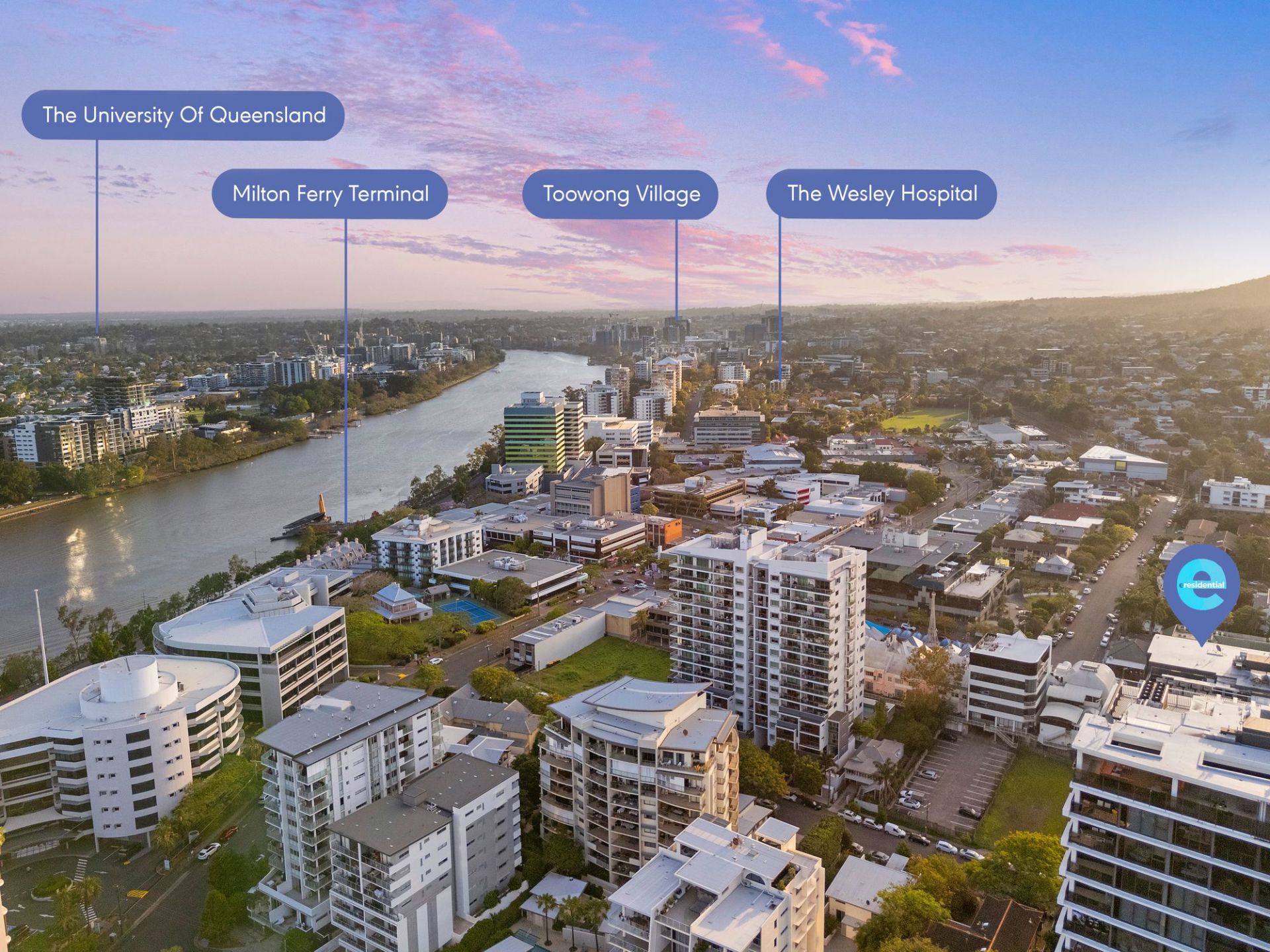 From entry, you will appreciate the expansive living area, which in turn seamlessly opens onto the large private balcony, hosting attractive views of surrounding areas. Enjoy the stunning rooftop view of the Brisbane river/City skyline, or laze by the infinity pool and plush gardens featured on the 6th floor. All this, so conveniently located across the road from the local transit centre.