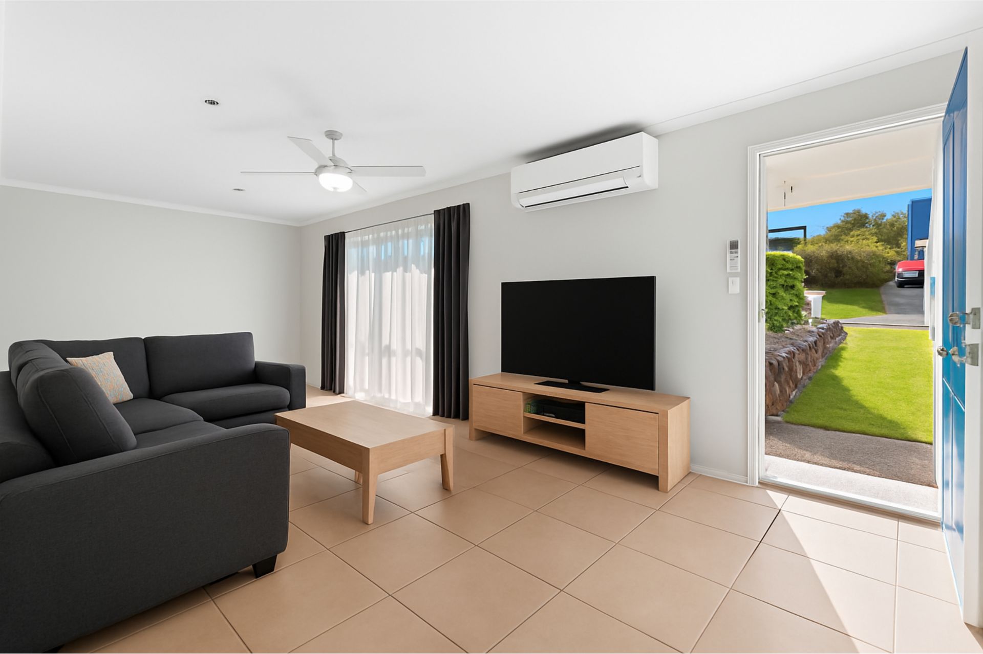 The whole family is well catered for with three bedrooms and two contemporary bathrooms including the master bedroom which has a built-in robe, private ensuite bathroom, and a view of the front yard. All the bedrooms are completed with air conditioning and fan.