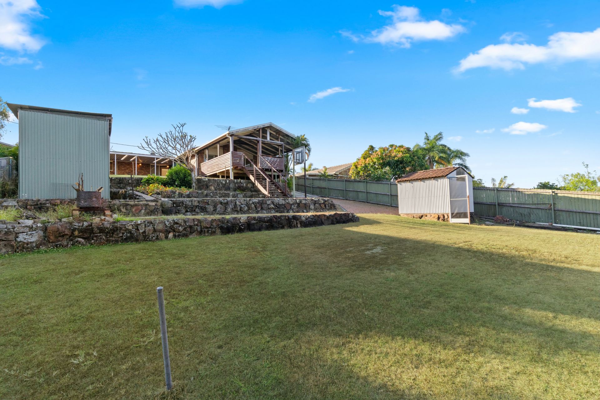Large gatherings are easy with the main living zone extending out onto a huge covered alfresco area and an expansive deck offering ample space to host family and friends. Soak in the tranquillity here as you listen to birds singing while taking in leafy elevated views to the southeast all the way to Stradbroke Island. There is plenty of grassed space for the kids and pets to play, while two large garden sheds provide great storage.