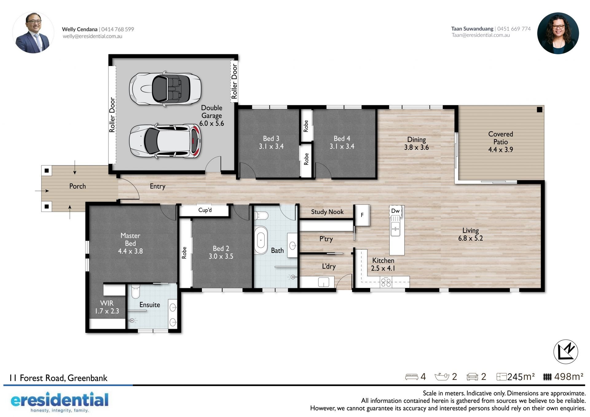 - 4 bedrooms | 2 bathrooms | 2-car garage | 498m² allotment