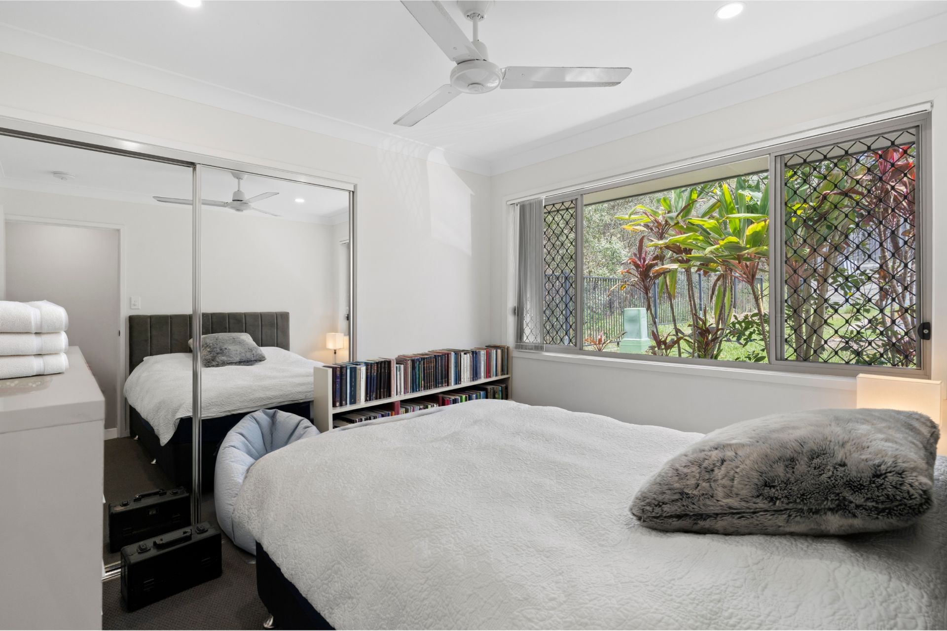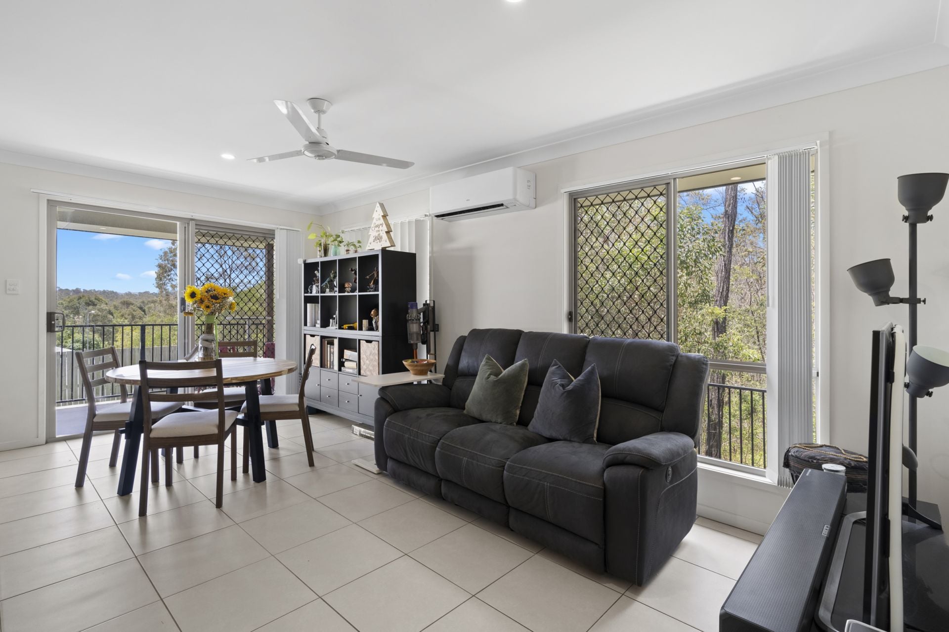 Sliding glass doors open up the living space to the covered alfresco area and fully fenced grassed backyard. Entertaining family and friends is easy as you watch the kids and pets play in the large yard with serene elevated views to the north. You can also enjoy the sounds of native birdlife from mature trees in the neighbouring bushland.