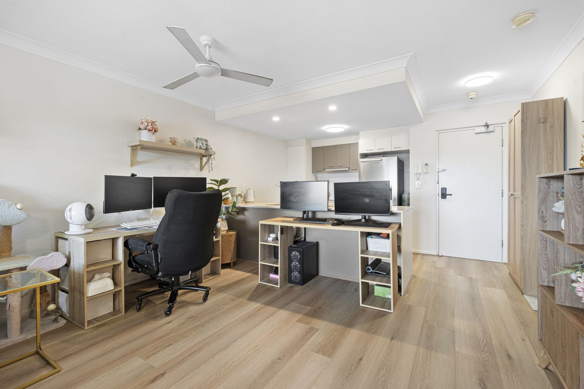 Both the bedrooms have built in robes and ceiling fans while the main bathroom incorporates the laundry and storage. The clever layout offers flexibility with living arrangements as the master bedroom enjoys a private ensuite which means that each bedroom has its own bathroom.