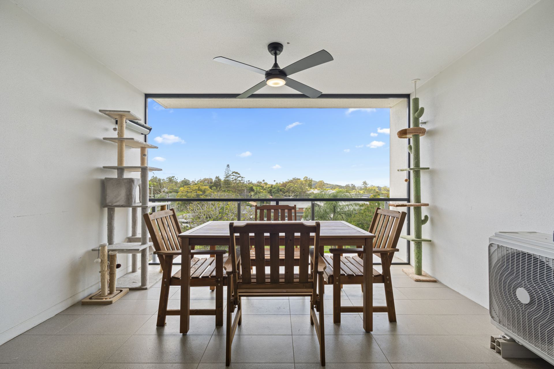 - Recently installed flyscreen enclosure on the balcony