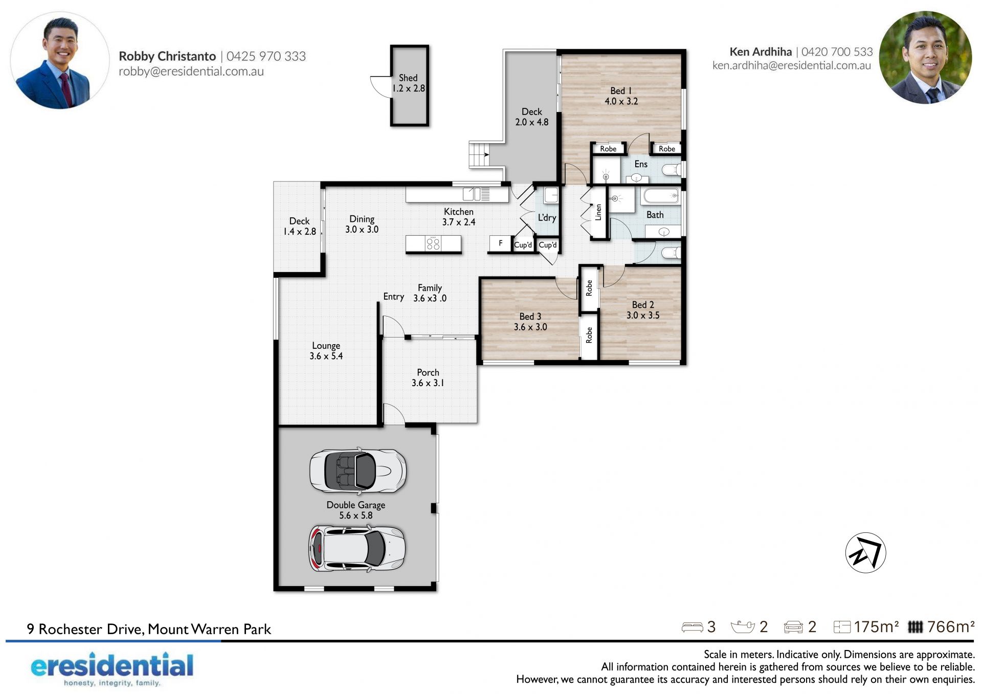 -3 bedrooms, 2 bathrooms, double garage