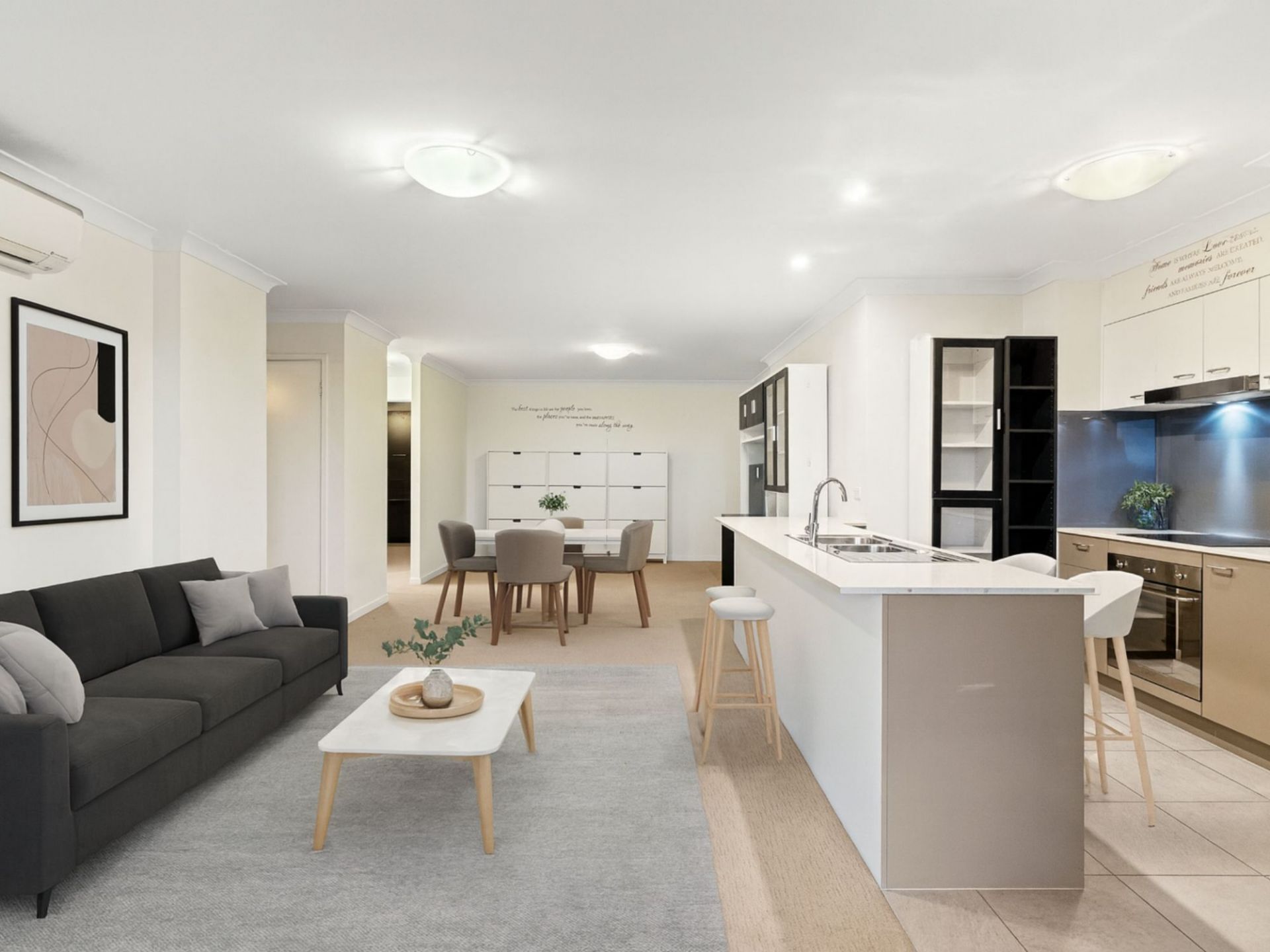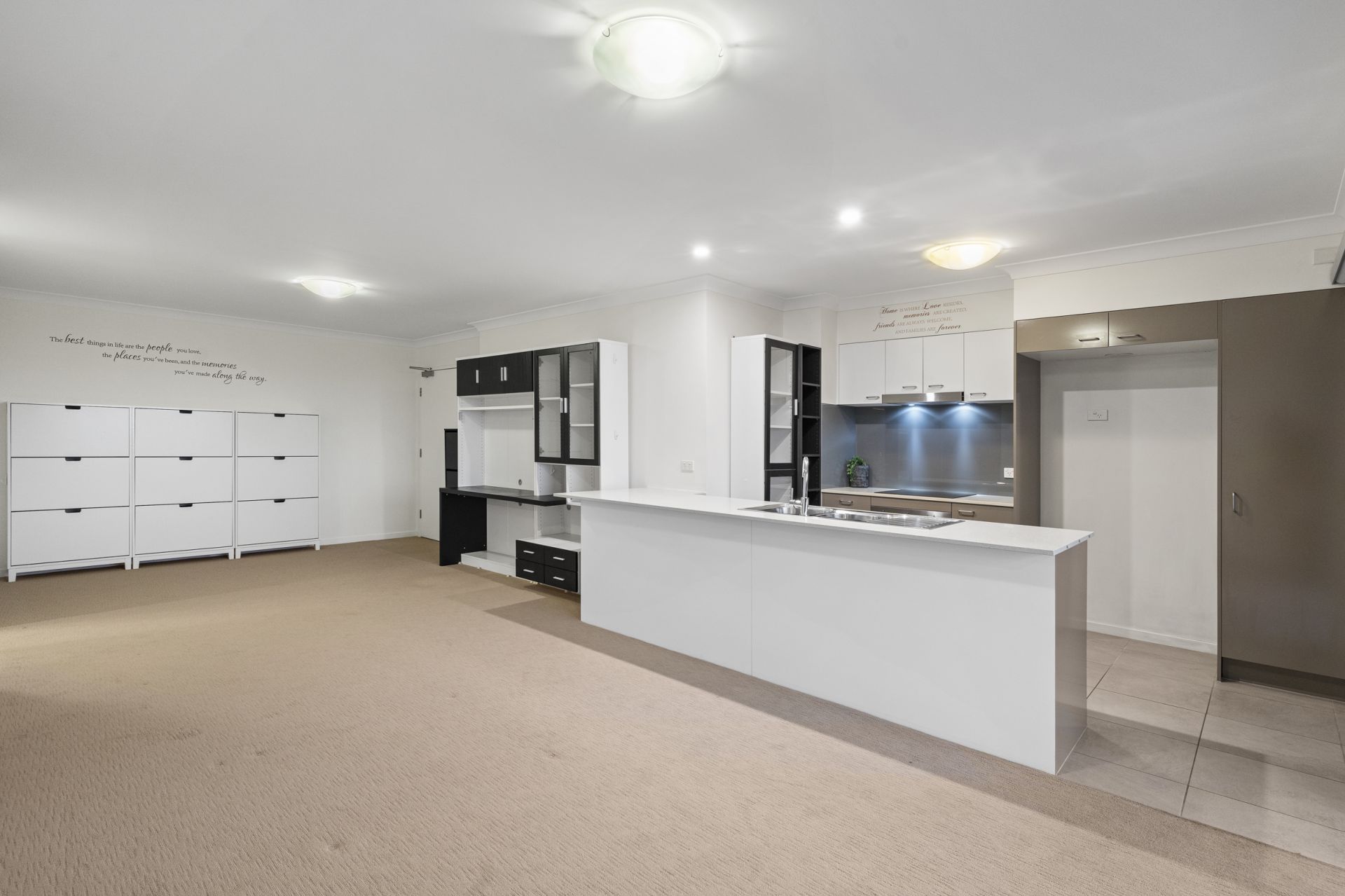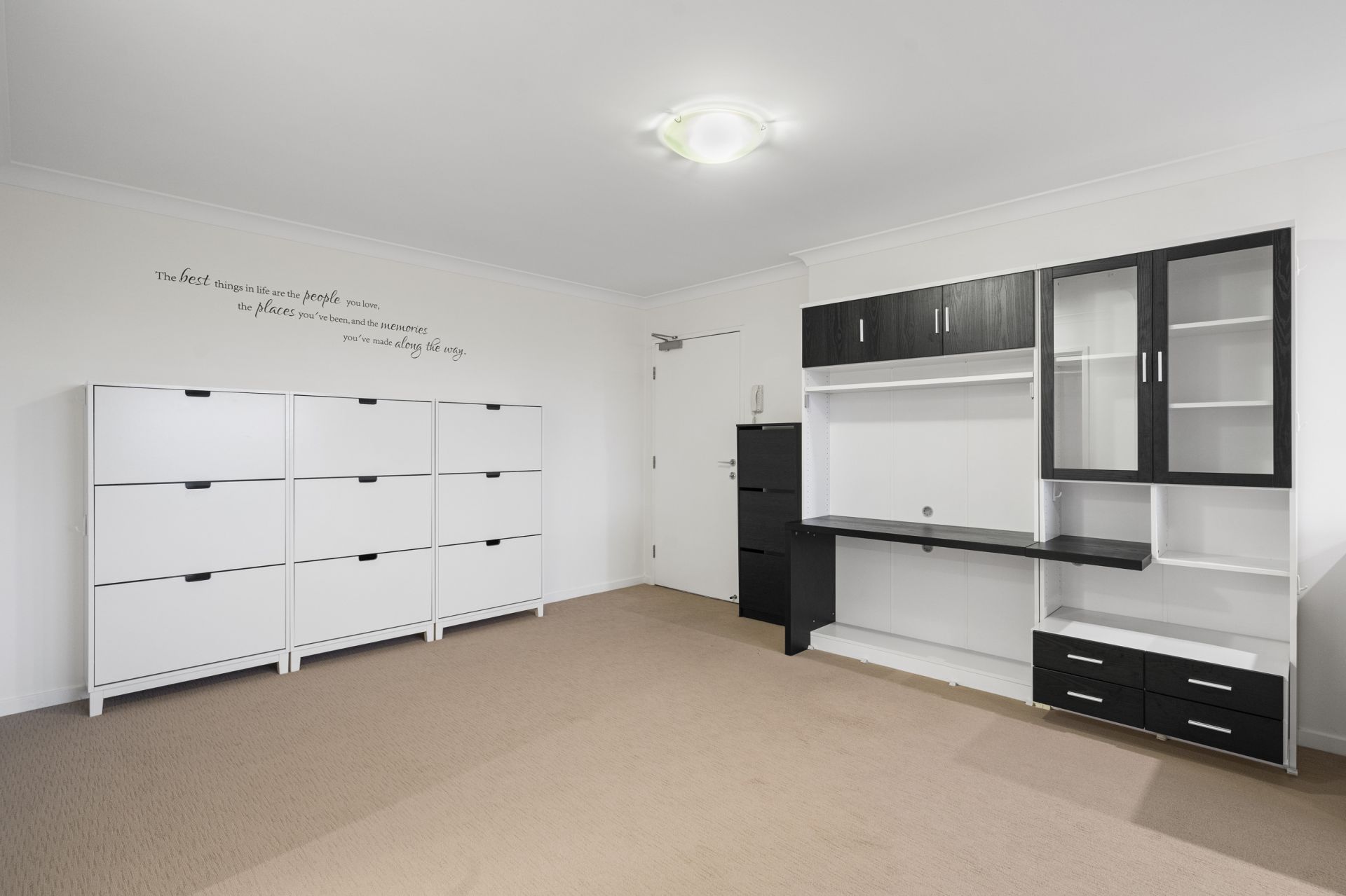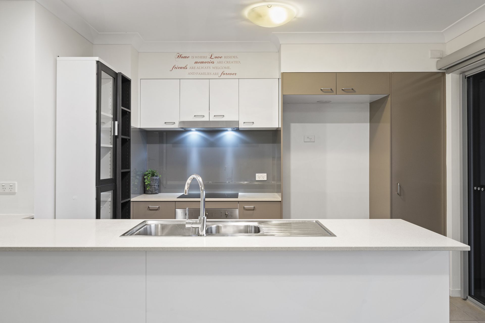 - Two generous bedrooms with built-in wardrobes, extra cabinetry & motorised block-out curtains