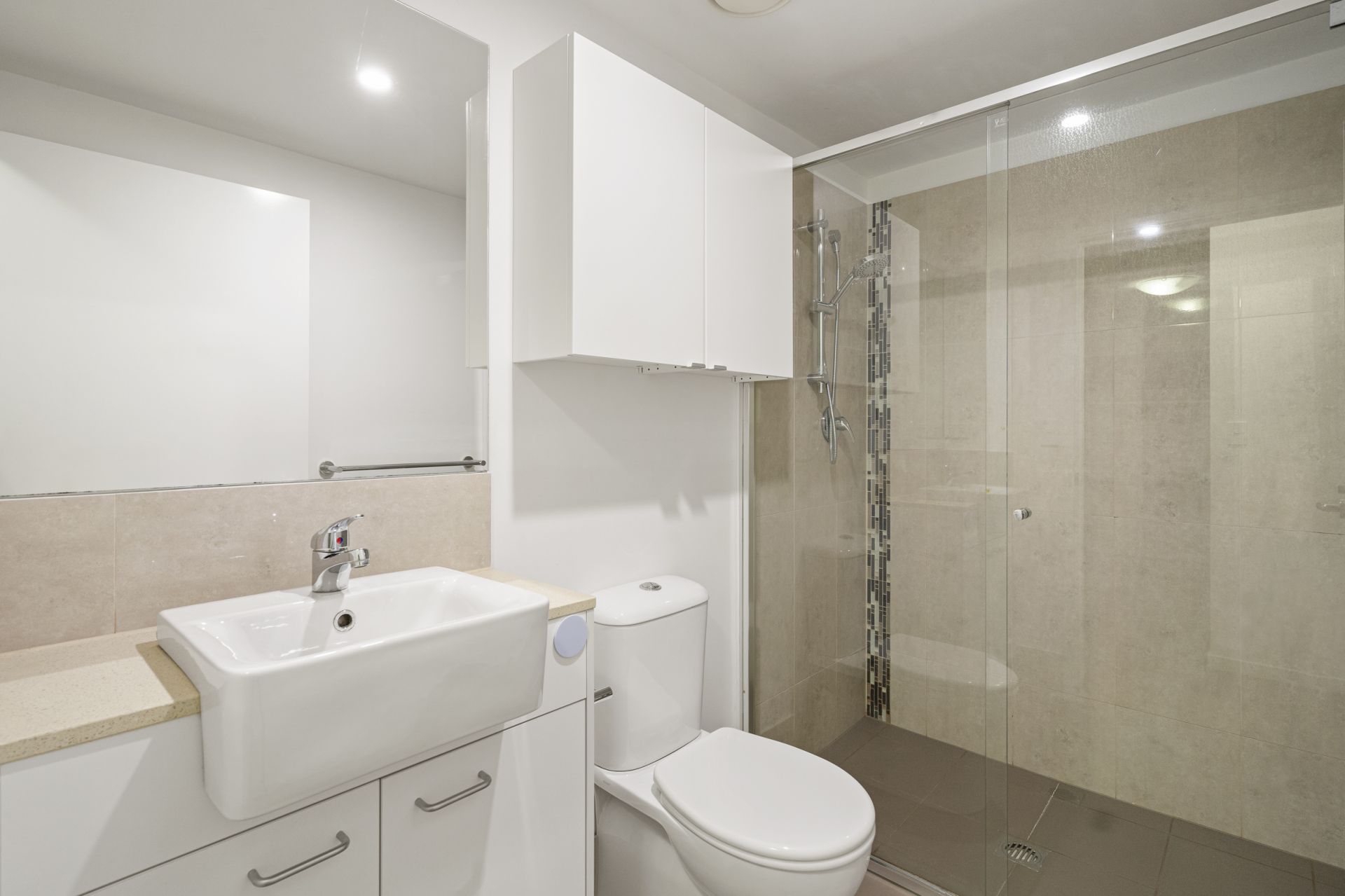 - Modern second bathroom with additional cabinetry
