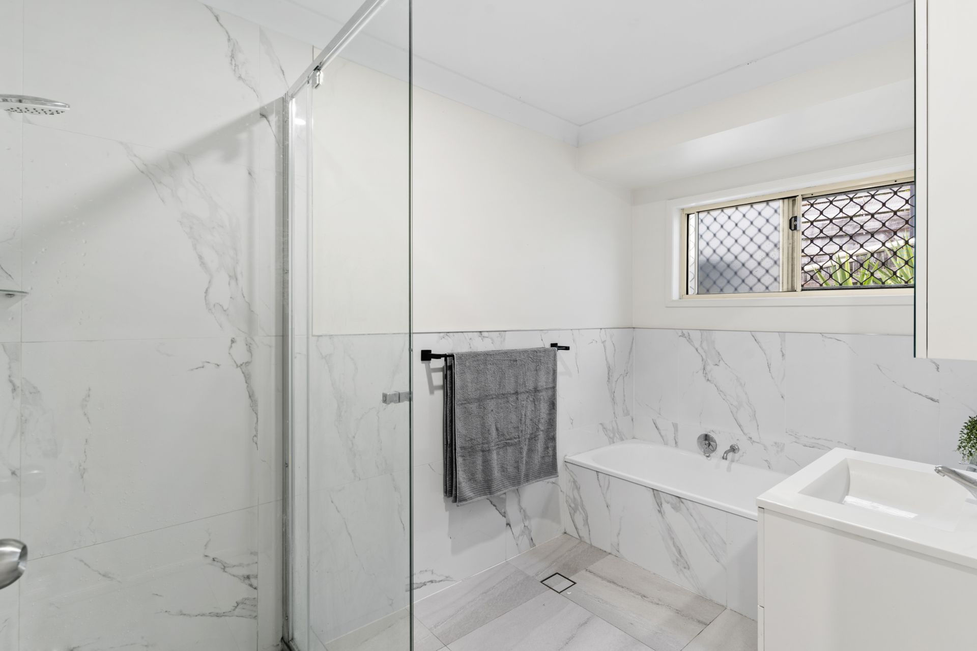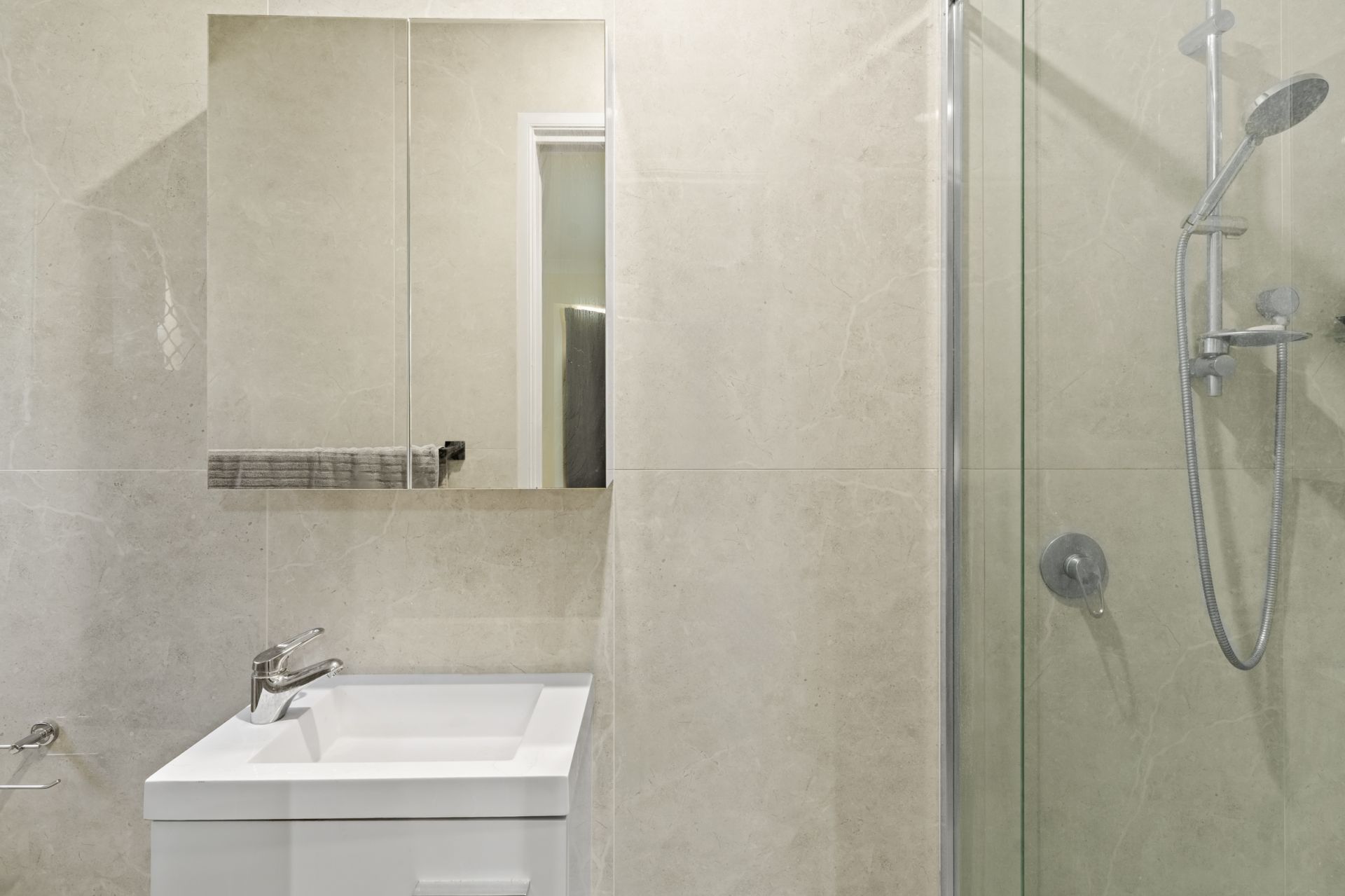 All three bedrooms are a generous size, while the master bedroom enjoys a sleek private ensuite with floor-to-ceiling tiles. The family is well catered for with a spacious main bathroom complete with stylish tiled finishes, a full-sized bathtub, floating vanity, and separate toilet.