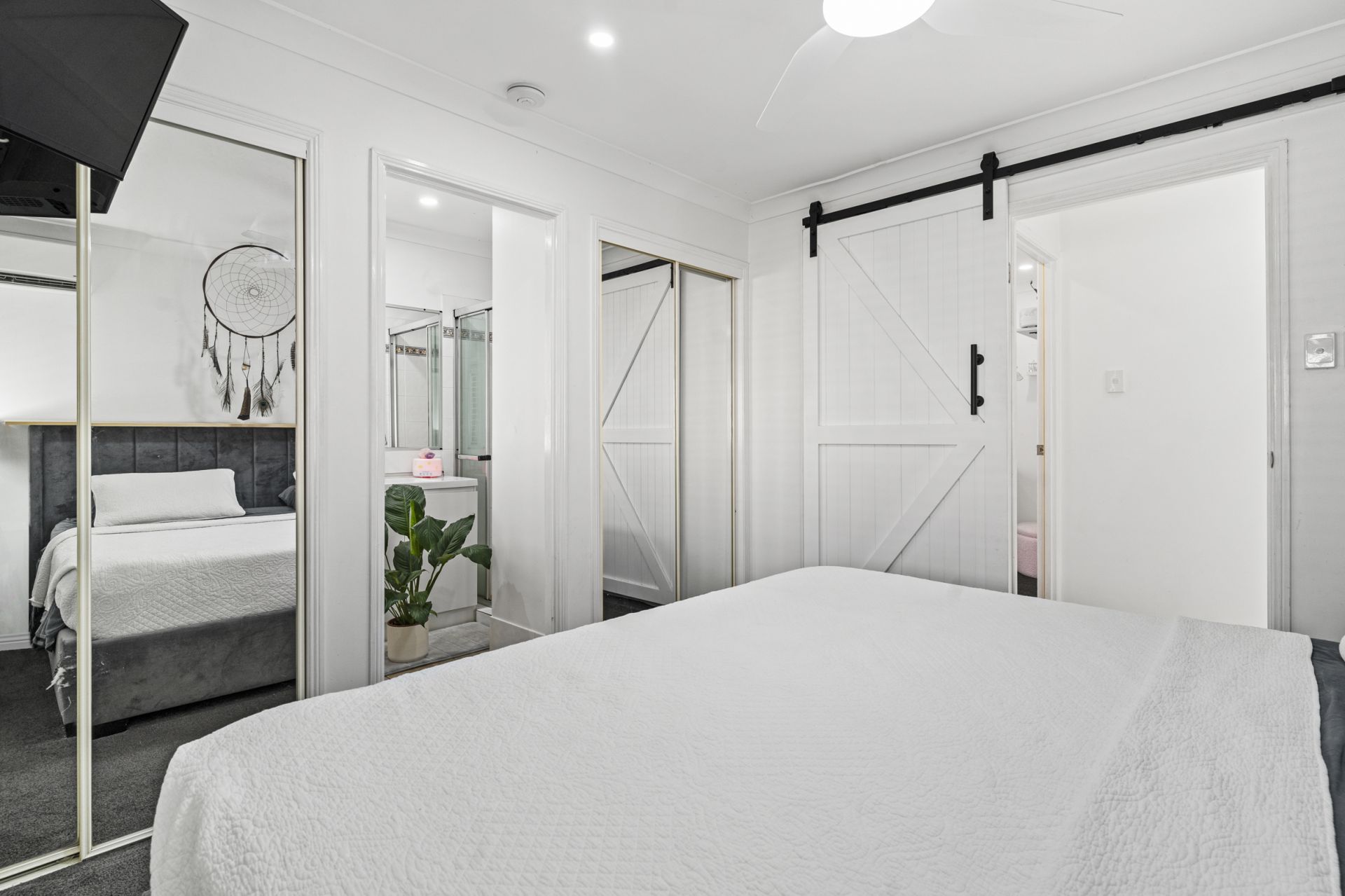 -Master bedroom is accessed by a gorgeous barn door