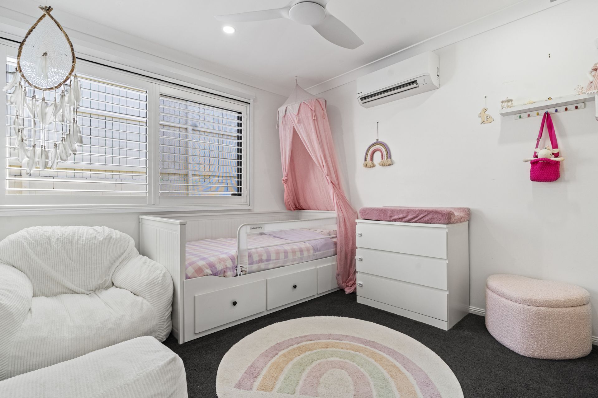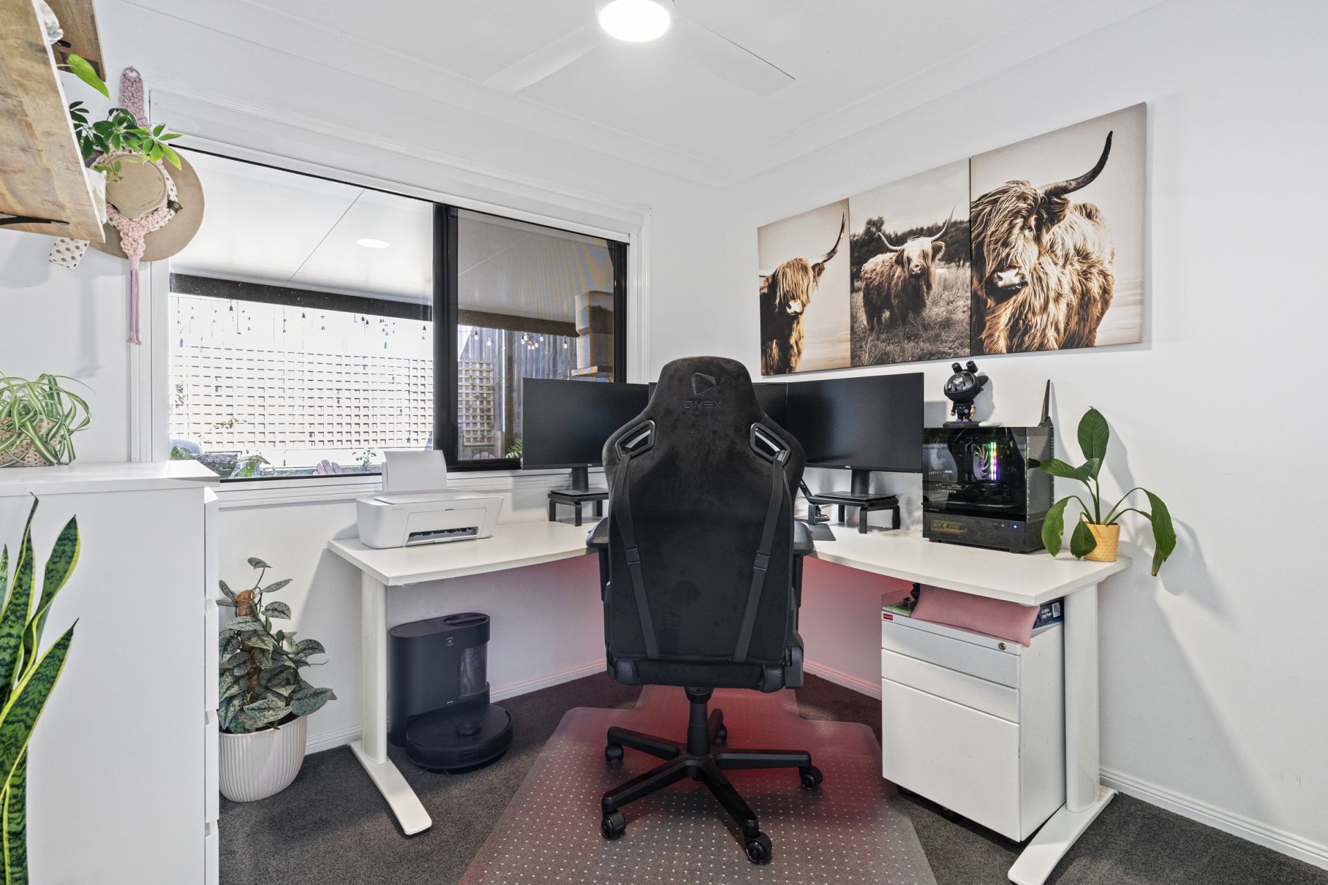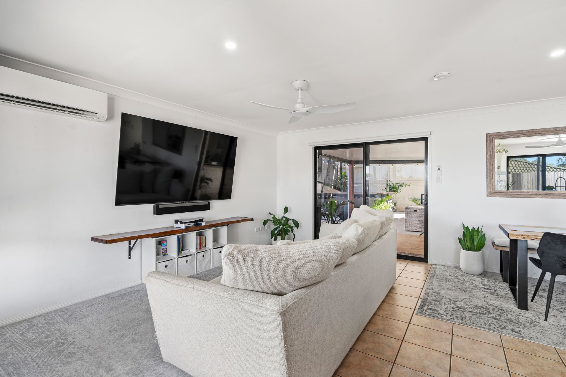 All three bedrooms have built-in robes and plush carpets, and the master bedroom is a true retreat with a sleek ensuite bathroom and twin robes. The garage has been fitted with carpet and air conditioning for use as a multipurpose room with its own access door providing a bonus living space for larger families.
