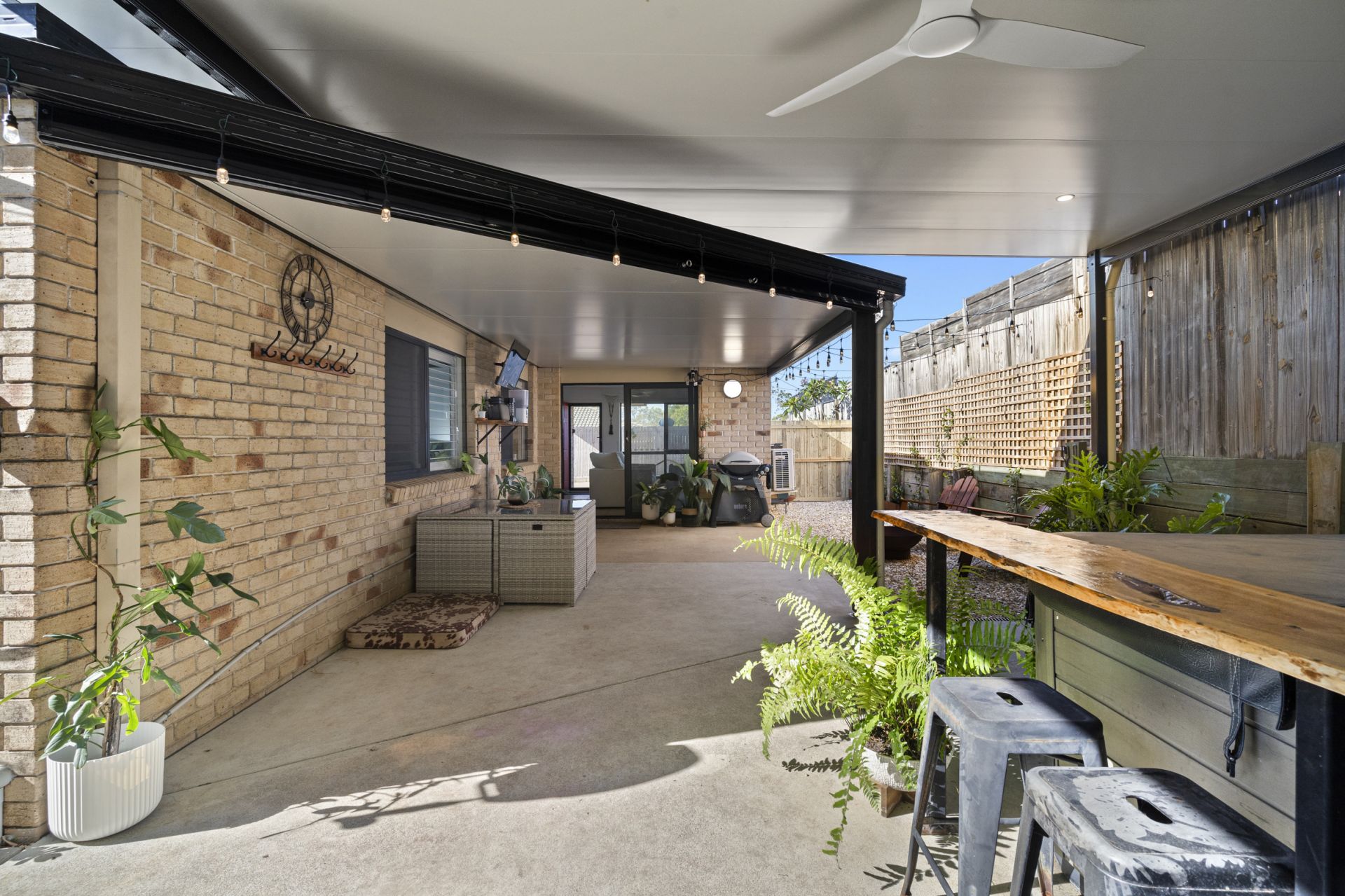 When entertaining family and friends, you can utilise the fully fenced yard and enjoy an alfresco lunch on the huge covered patio. This space is very private and feels more like an outdoor room, ideal for relaxing or hosting guests.
