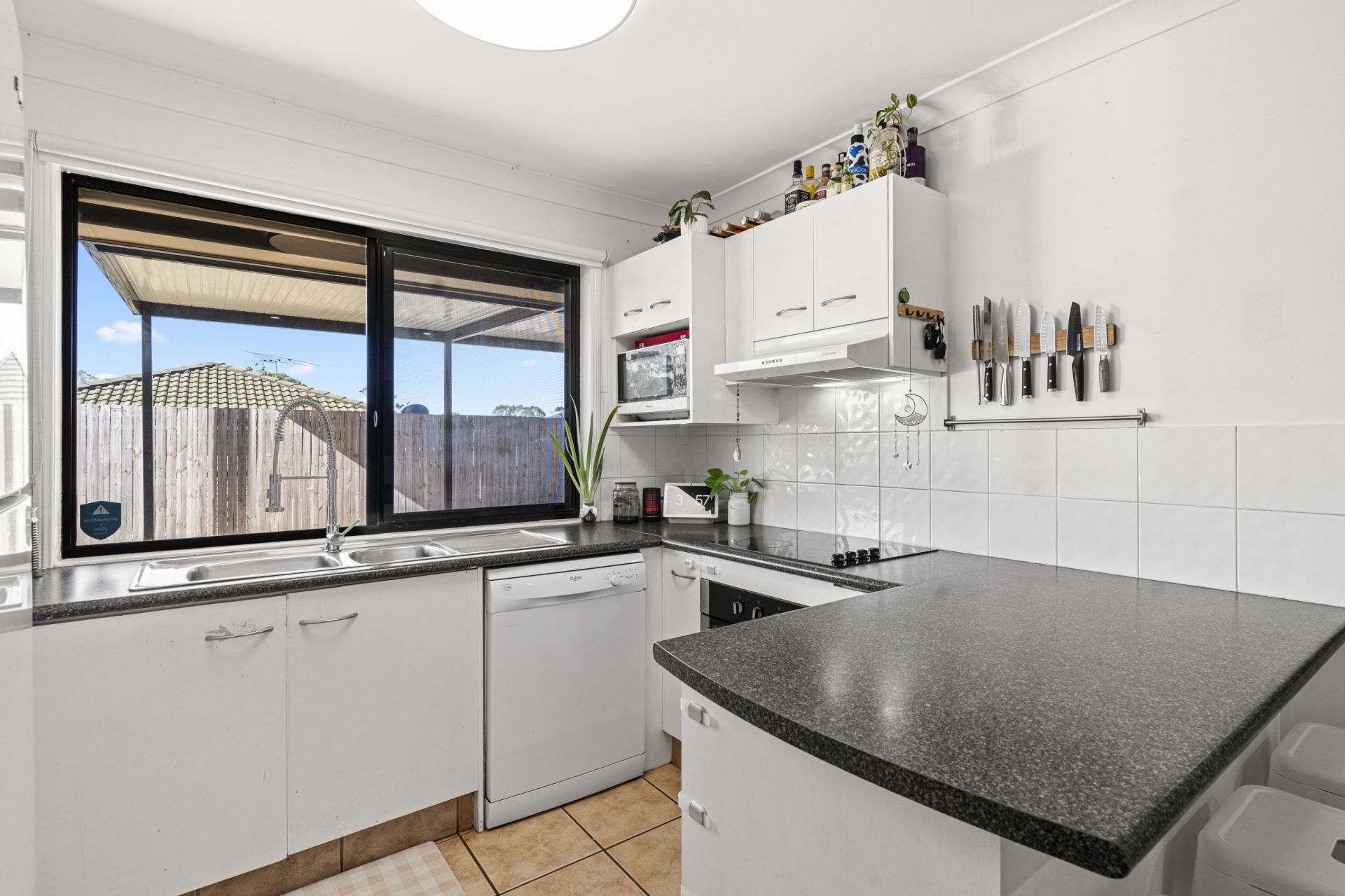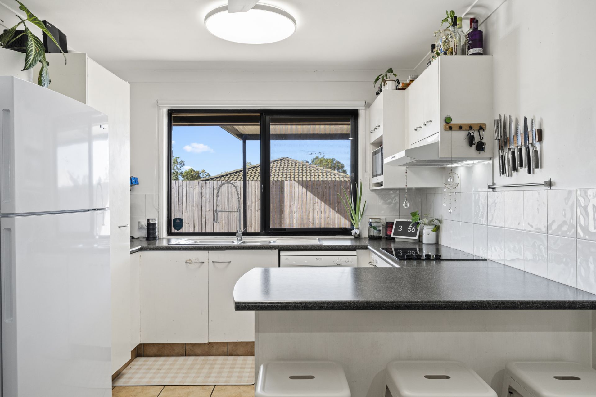 The spacious living area is bright and airy thanks to the large windows and glass sliding doors that let in oodles of natural light. Offering everything you need to prepare delicious meals, the kitchen boasts a new dishwasher, white cabinetry, ample bench space, and a peninsula with room for seating.