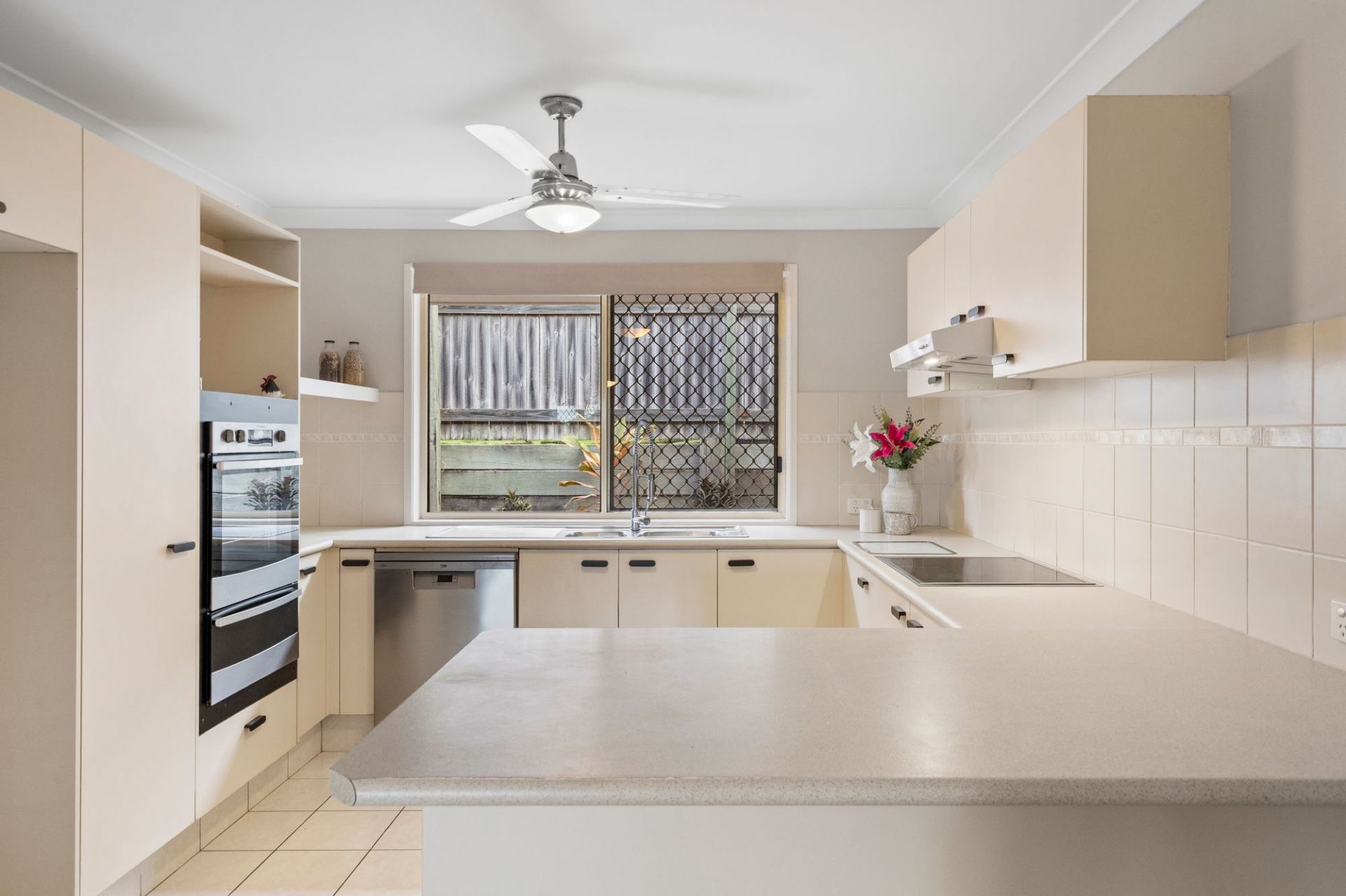 Established gardens and a private entry create an inviting first impression of the property, positioned in a quiet leafy neighbourhood. At the heart of the home lies a spacious open plan living, dining and kitchen area that seamlessly connects the indoors with the outdoors. Flooded with natural light through large windows and glass sliding doors, this versatile zone is designed for both relaxed everyday living and effortless entertaining.