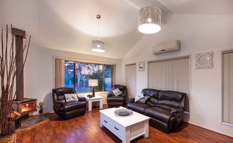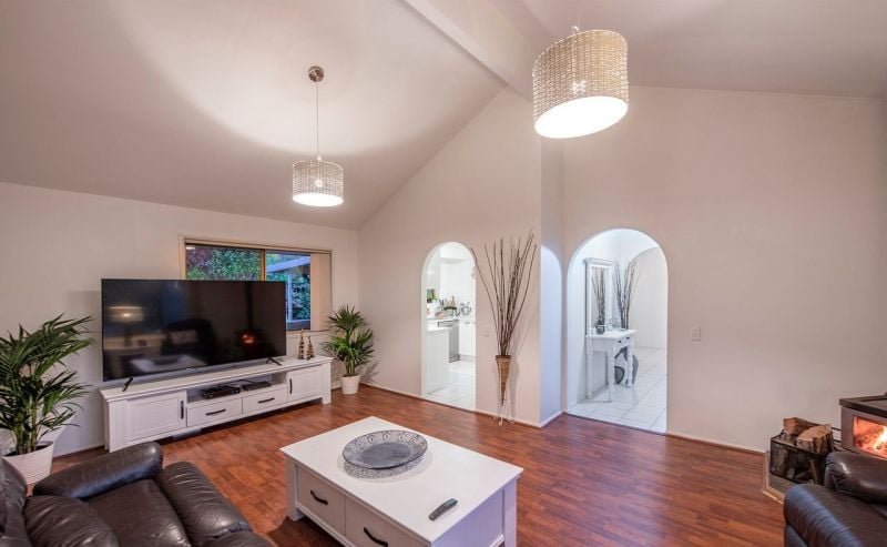 • Spacious formal lounge room featuring cathedral ceilings and slow combustion fireplace