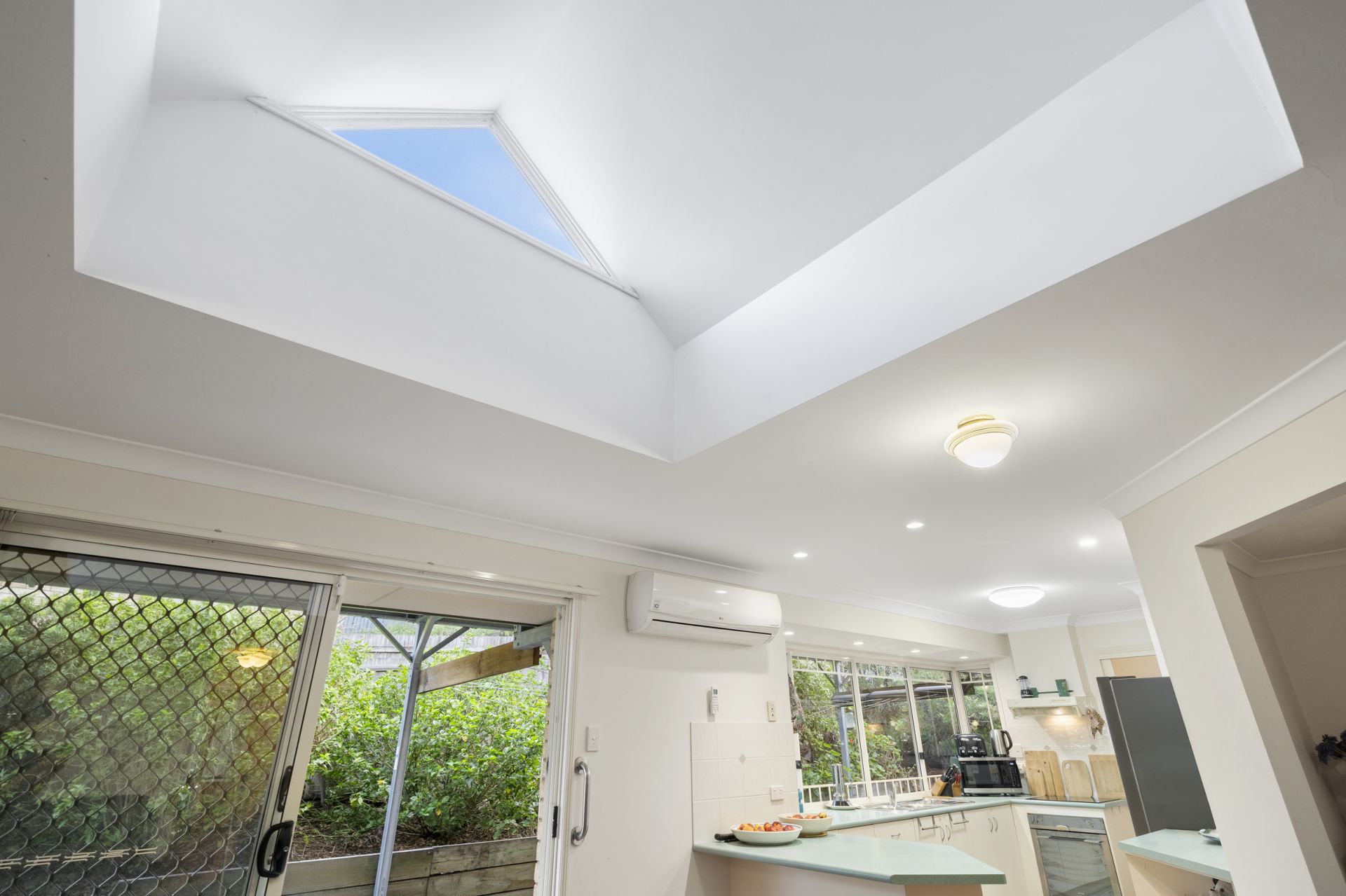 Step inside to discover a home where natural light floods in through generous windows, illuminating the open plan living space that forms the heart of this residence. The high recessed ceiling enhances the feeling of space, while the kitchen offers ample storage, white cabinetry, and a functional layout, making meal preparation a delight.